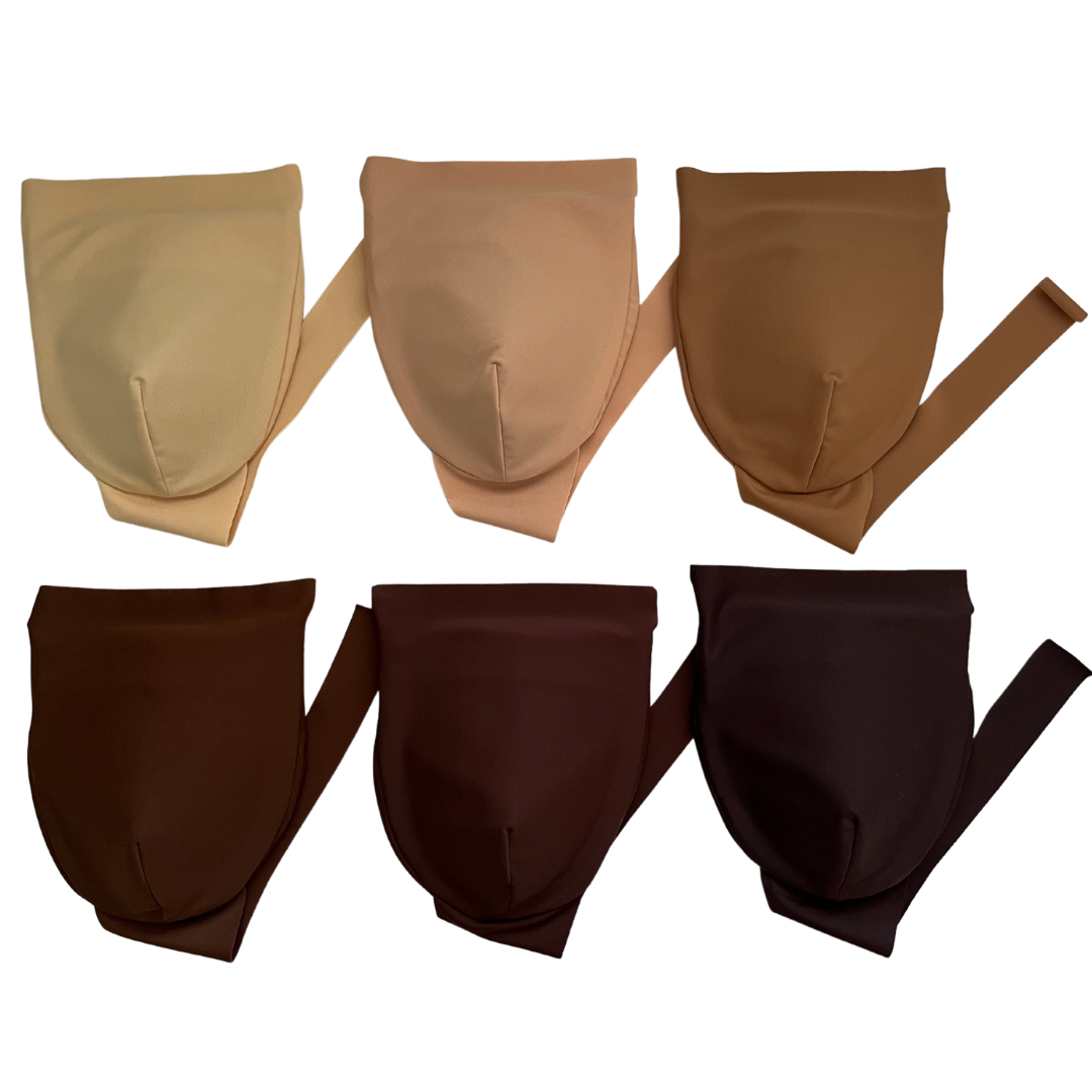 The Padded Pouch with Tail is stretchy and flexible, designed for ultimate comfort. It comes with a removable low-profile molded cup. There is a separate inside pocket for the barrier. It has an adjustable drawstring opening with a flat silicone toggle for securing in place. The tail is customizable as it can be shortened and/or slimmed down on the sides according to each individual body.