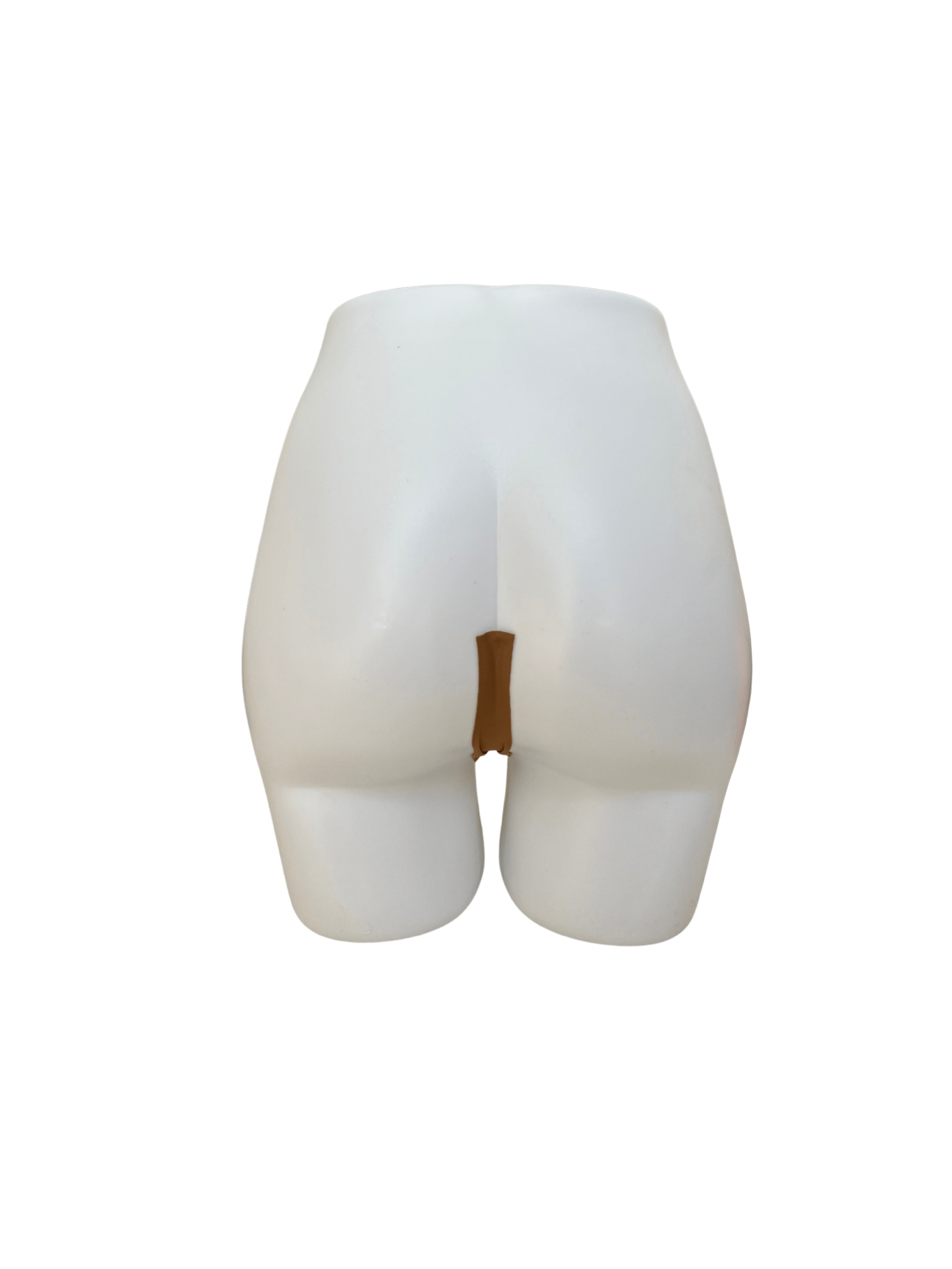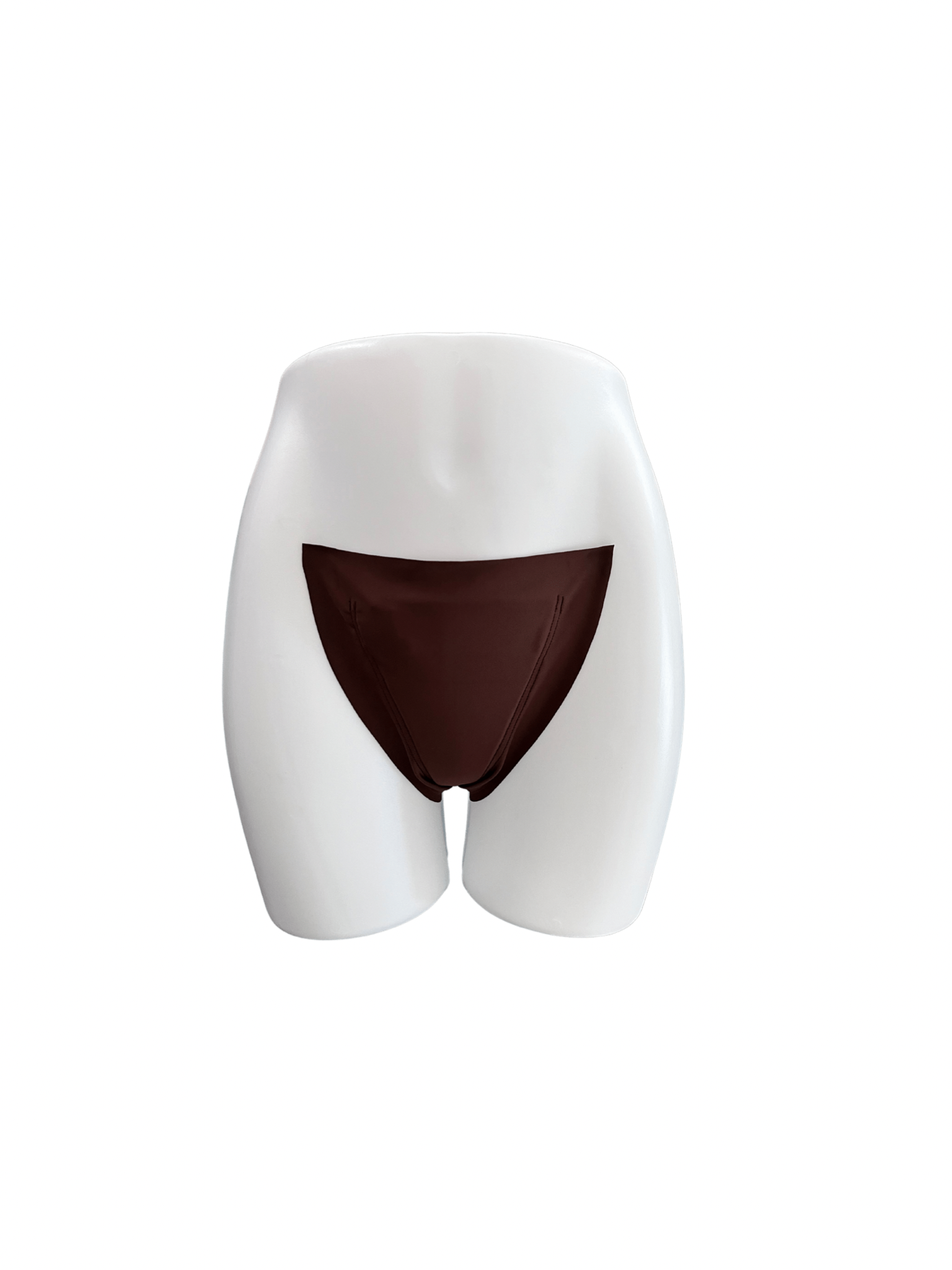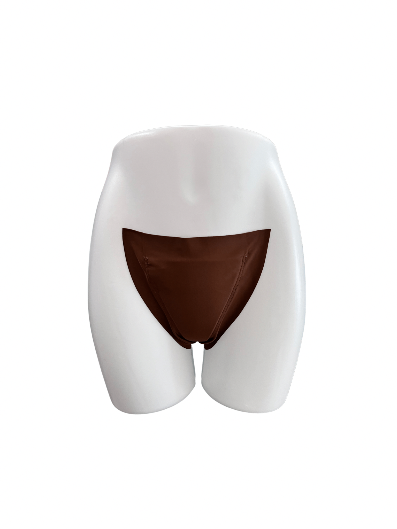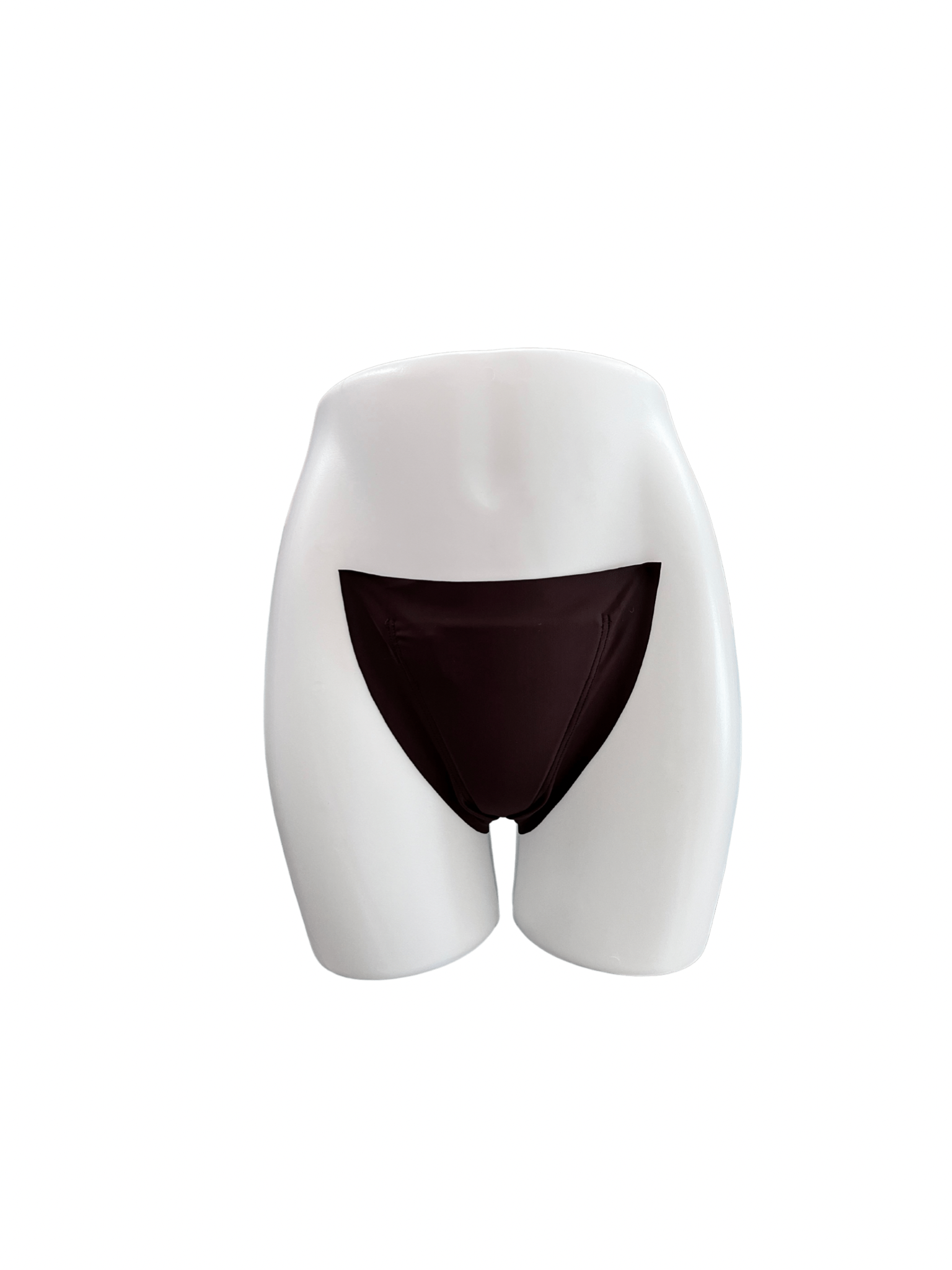 This minimal garment is designed for maximal coverage, and to feel like you are wearing underwear. The raw edge makes it customizable to fit the person wearing it. It can be cut down if needed and edges won't fray. It has built in "wings" for extra coverage. It comes with a flat barrier that is soft and flexible for movement and comfort, while providing protection between performers.